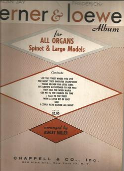 Lerner & Loewe Album for All Organs Spinet & Large Models arranged by Ashley Miller Published by Chappell 42 pages Vintage pre-owned book in good condition, I noticed very light pencil marks on one page See my other listings for TONS more music! This comes from a recently closed music store