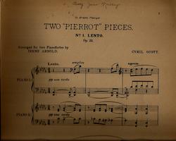 Lento, Op.35, No.1 (from Two Pierrot Pieces) Cyril Scott Arranged for 2 Piano, 4 Hands by Irene Arnold Set of 2 Scores 8 Pages Each Boosey and Hawkes Excellent Pre-Owned Condition Piano1
