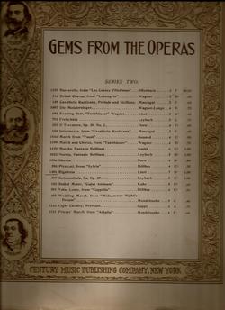 Gems from the Operas Franz Liszt  Rigoletto  Paraphrase  for Piano  published by Century Music Publishing 11 pages  The size is approximately 11"x14" tape repair to spine, otherwise very good condition unmarked See my other listings for TONS more!