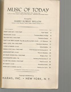 Music of Today Choral Adaptations by Harry Robert Wilson published by Harms Vintage pre-owned book in fairly good condition with old tape 64 pages unmarked book size approximately 7x10