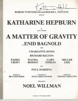 Katharine Hepburn Screen Legend Signed Program "A Matter of Gravity" 1976
