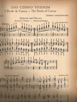 Das Czerny Studium - The Study of Czerny Middle & Upper Grade Teil III, Bk.2 very old book published by B. Schott's Sohne 77 pages no cover, first page is loosening from binding age yellowed some fragility of the page edges music is fine