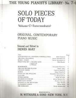 Solo Pieces of Today selected and edited by Denes Agay Young Pianist's Library No. 7-C Vol. C (Intermediate) 32 pages Vintage book in very good condition published by M. Witmark See my other listings for TONS more music!