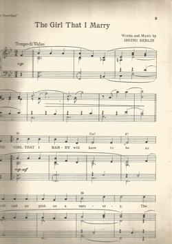 Vintage sheet music of The Girl That I Marry from the Rodgers & Hammerstein musical, which starred Ethel Merman, Annie Get Your Gun ~ lyrics and music by Irving Berlin. Published by Irving Berlin Music Company. In good condition. 5 pages, no parts. Copyright 1946. OrganAbag1