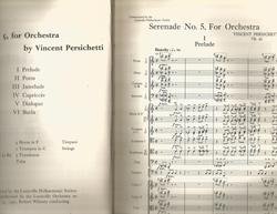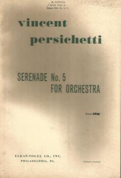 Vincent Persichetti Serenade No.5 for Orchestra Study Score published by Elkan-Vogel Co., Inc., 1961 76 pages mild shelf wear to cover former owner was composer Hall Overton (name stamp on top cover) book size approximately 7x10 Excellent pre-owned condition, clean unmarked inside