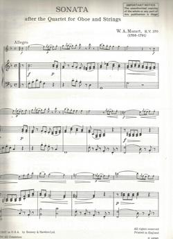 Mozart Sonata After the Quartet for Oboe & Strings for Oboe & Piano Published by Boosey & Hawkes score with separate oboe part unused old store stock excellent condition minimal shelf wear