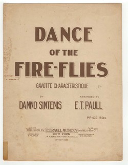 Dance of The Fire-Flies Gavotte Characteristique by Danno Sintenis. Arranged by E.T.Paull. 5 Pages 1902 Copyright. Clean Condition, Some Old Tape and New Repairs. Ashlyn4