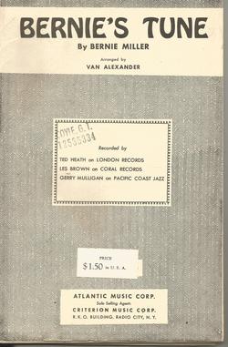 Bernie's Tune by Bernie Miller Arr. Van Alexander Combo Orchestra Arrangement