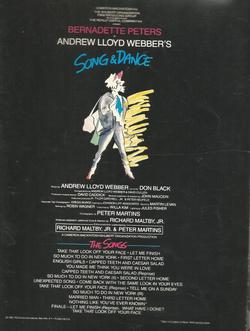 Bernadette Peters in Andrew Lloyd Webber's Song & Dance The Songs Piano/Vocal/Guitar Published by Hal Leonard 1985 Very good condition minor age/shelf wear to cover interior excellent