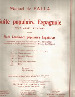 Manuel de Falla Jota for Violin & Piano from 7 Popular Spanish Songs published by Editions Max Eschig Paris good pre-owned condition light overall age wear & tear