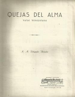 Quejas del Alma Valse Venezulano A.M. Delgado Briceno for Piano published by Ediciones Musicales 1962 very good condition