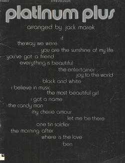 Platinum Plus Arranged by Jack Marek for E Flat Instruments copyright 1975 Screen Gems-Columbia 49 pages Very good pre-owned condition, cover has minor age appropriate wear, interior excellent
