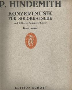 Hindemith Konzertmusik fur Solobratsche, Viola & Piano. Schott 3150
