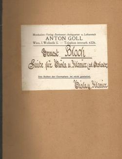 Ernest Bloch Suite for Viola & Piano. Universal Edition 6950