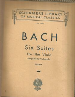 Bach 6 Suites for the Viola (Originally for the Violoncello) (Lifschey) published by G. Schirmer, 1936 Vol. 1564 53 pages Very good pre-owned condition tape reinforcement to binding interior excellent