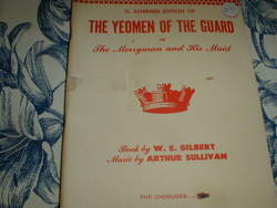 Lyrics and sheet music for the chorus of W.S. Gilbert's and Arthur Sullivan's The yeomen of the Guard also known as The Merryman and His Maid. 63 pages. Printed by G. Schirmer. Unused condition/Old Store Stock with some old water staining, music still usable, for the user, not collector 15-01(2)