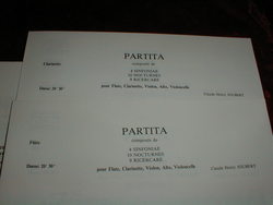 CLAUE HENRY JUBERT. PARTITA SCORE WITH SET OF 5 PARTS FLUTE, CLARINETTE, VIOLON, ALTO, AND VIOLONCELLO Publisher GERARD BILLAUDOT Copyright 1984