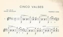 Federico Cano. Cinco Valses for Guitar. Rafael Balaguer.