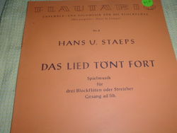 Hans U. Staeps ~ Das Lied Tont Fort ~ spielmusik fur drei blockfloten oder streicher gesang ad lib. Published by Verlag Doblinger.No.2 8 pages. Unused, Old Store Stock