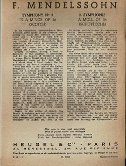 Mendelssohn, Symphony No.3 in A Minor, Op.56 (Scotch) Heugel Score
