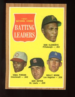 1962 Topps Baseball #052 National League Batting Leaders Roberto Clemente