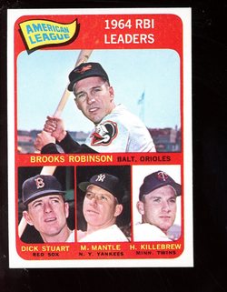 1965 Topps Baseball #005 American League RBI Leaders Mantle Killebrew