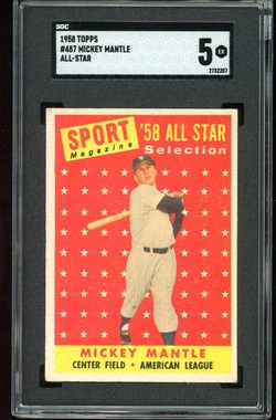 1958 Topps Baseball #487 Mickey Mantle All-Star SGC 5 New York Yankees HOF