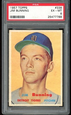 1957 Topps Baseball #338 Jim Bunning Rookie PSA 6 Detroit Tigers HOF
