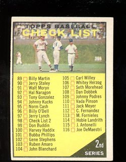 1961 Topps Baseball #098 2nd Series Checklist - Number In Black