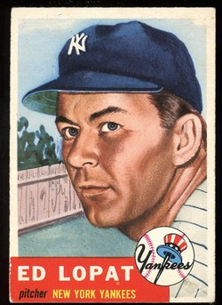 1953 Topps Baseball #087 Ed Lopat New York Yankees - White Bio