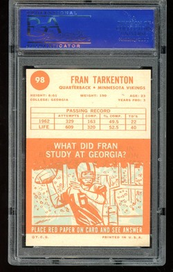 1963 Topps Football #098 Fran Tarkenton PSA 7 Minnesota Vikings HOF