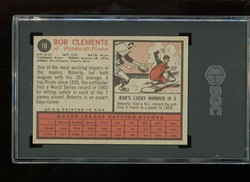 1962 Topps Baseball Card (#10) of Pittsburgh Pirates Hall-of-Fame Outfielder, Roberto Bob Clemente. Card is professionally graded 7 NM (Near Mint) by SGC.