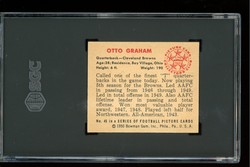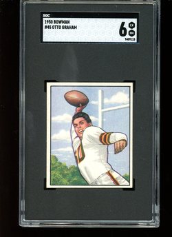 1950 Bowman Football Rookie Card (#45) of Cleveland Browns Hall-of-Fame Quarterback, Otto Graham. Card is professionally graded 6 EX-MT (Excellent to Mint) by SGC.