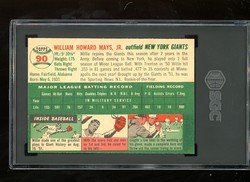 1954 Topps Baseball Card (#90) of New York Giants Hall-of-Fame Outfielder, Willie Mays. Card is professionally graded 5 EX (Excellent) by SGC .