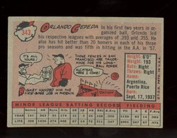 1958 Topps Baseball #343 Orlando Cepeda Rookie San Francisco Giants HOF