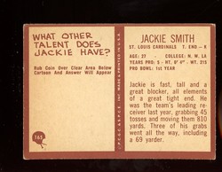 1967 Philadelphia Gum Co. Football Rookie Card (#165) of St Louis Cardinals Hall-of-Fame Tight End, Jackie Smith.