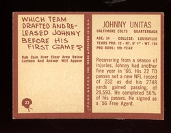 1967 Philadelphia Gum Co. Football Card (#23) of Baltimore Colts Hall-of-Fame Quarterback, Johnny Unitas.