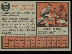 1962 Topps Baseball #545 Hoyt Wilhelm Baltimore Orioles HOF High # SP