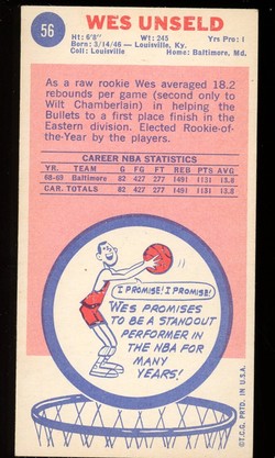 1969 Topps Basketball #056 Wes Unseld Rookie Baltimore Bullets HOF