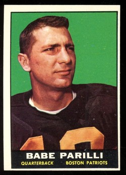 1961 Topps Football Card (#175) Of former Boston Patriots Quarterback, Babe Parilli.