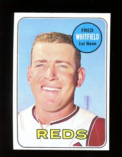1969 Topps Baseball Card (#518) of Former Cincinnati Reds 1st Baseman, Fred Whitfield. Card is EX-MT+ with some light corner wear and no creases. No writing, pin holes, tape stains. See scan for centering.