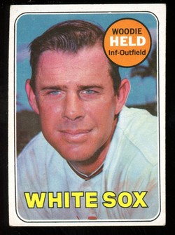 1969 Topps Baseball Card (#636) of Former Chicago White Sox Infielder, Woodie Held. Card is EX with some corner wear and no creases. No writing, pin holes, tape stains. See scan for centering.