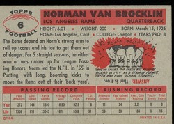 1956 Topps Football Card (#6) Of Los Angeles Rams Hall-of-Fame Quarterback, Norm Van Brocklin.