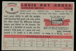 1956 Topps Football Card (#9) Of Cleveland Browns Hall-of-Fame Tackle/Kicker, Lou Groza.