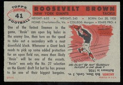 1956 Topps Football Rookie Card (#41) Of New York Giants Hall-of-Fame Tackle, Roosevelt Brown.
