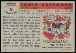 1956 Topps Football Card (#8) Of Detroit Lions Hall-of-Fame Tackle, Lou Creekmur.