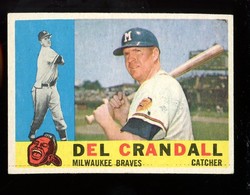 1960 Topps Baseball Card (#170) of Former Milwaukee Braves All-Star Catcher, Del Crandall. Card is EX+ with some corner wear and no creases. No writing, pin holes, tape stains. See scan for centering.