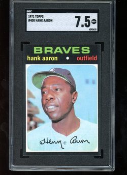 1971 Topps Baseball Card (#400) of Atlanta Braves Hall-of-Fame Outfielder, Hank Aaron. Card is professionally graded 7.5 NM+ (Near Mint Plus) by SGC.