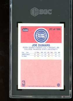1986 Fleer Basketball #027 Joe Dumars Rookie SGC 9 Detroit Pistons HOF