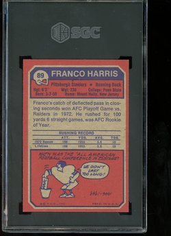 1973 Topps Football #089 Franco Harris Rookie SGC 7 Pittsburgh Steelers HOF
